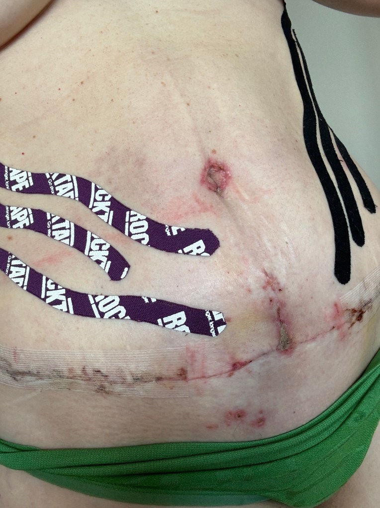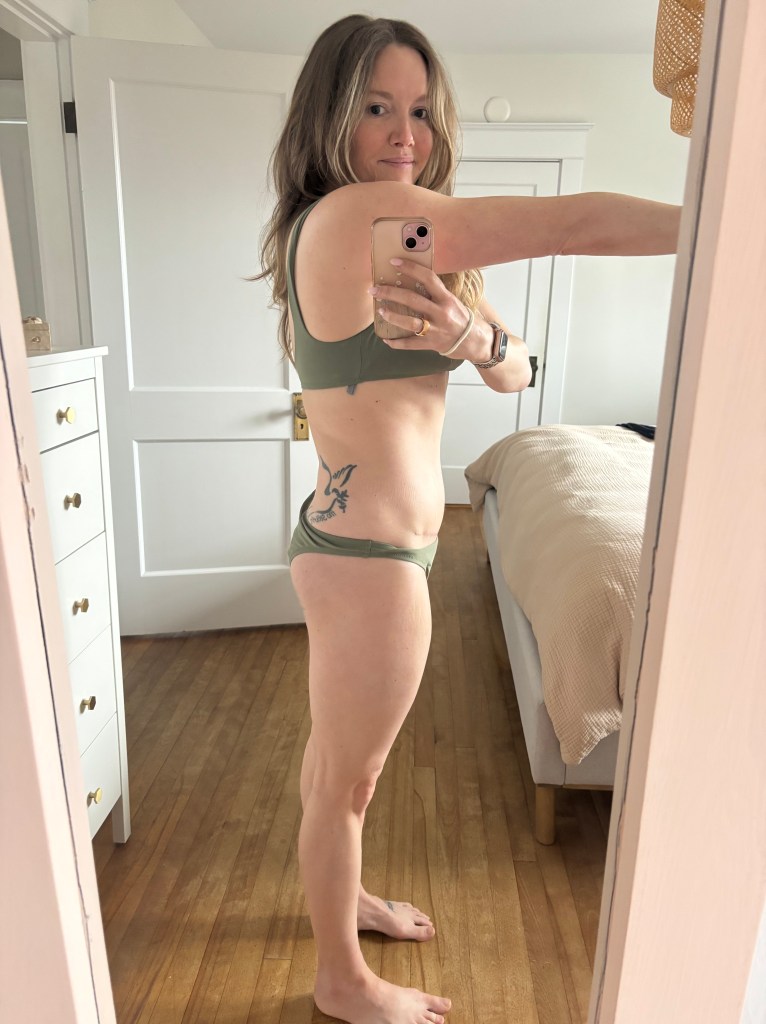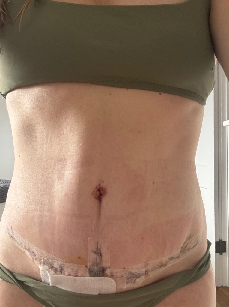 I’m developing a fair bit of scar tissue beneath the little vertical scar which I’m sad about but cautiously optimistic that some treatment will help break that up and flatten it. Fortunately, it’s really only something I’m exposed to – even the scar redness is a non-issue since it’s easily hidden by my bikini bottoms! (Photos below)